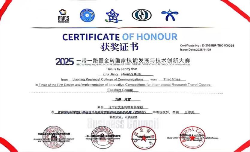 喜报||我校教师在2025“一带一路”暨金砖国家技能发展与技术创新大赛首届国际研学旅行课程设计与实施创新赛项全国总决赛获三等奖