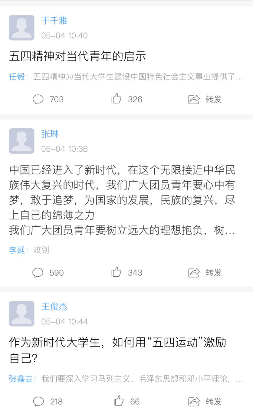 大会在全体团员青年网络云合唱《光荣啊,中国共青团!》中圆满结束,全校青年团员以及辅导员在直播间互动观看了整个大会流程。