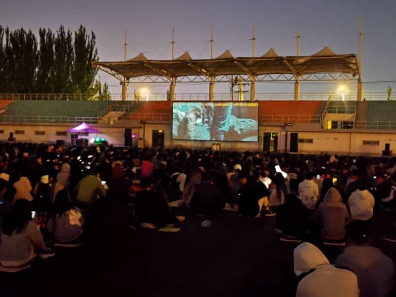 最后,学校领导一行来到了露天电影的播放现场,了解电影播放及学生的参与情况,和广大学生一同感受节日气氛。