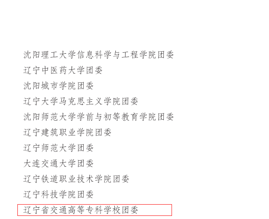 近日,共青团辽宁省委员会公布《关于表彰2020年度“辽宁省五四红旗团委”“辽宁省先进团委”“辽宁省五四红旗团支部”“辽宁省优秀共青团干部”“辽宁省优秀共青团员”的决定》(辽团发【2021】7号),表彰2020年度表现突出的团组织、团干部和广大团员。全省共有14所本、专科高校团委、8所高校基层团支部位列其中。我校团委荣获“辽宁省先进团委”荣誉称号,管理工程系会展策划与管理专业18-2团支部荣获“辽宁省五四红旗团支部”荣誉称号,道路与桥梁工程系赵泽政荣获“辽宁省优秀共青团员”荣誉称号。