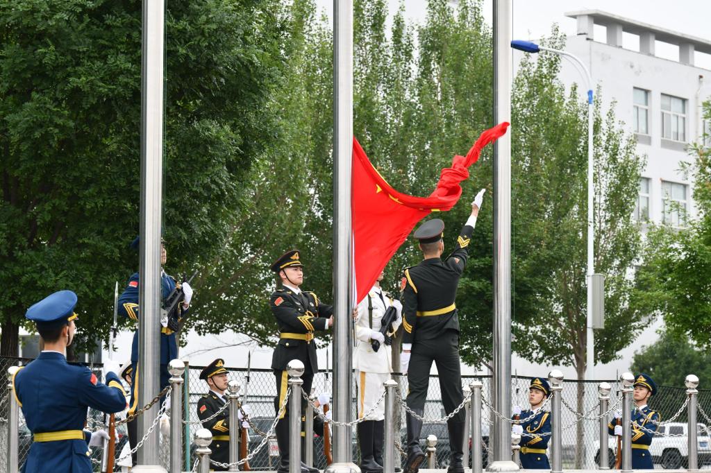 7月1日早7时,我校隆重举行“同心向党,礼赞百年”庆祝中国共产党成立100周年主题升旗仪式,向中国共产党百年华诞送上美好祝福。学校党政领导班子,全体中层干部、全体辅导员、全体在校学生,共6300余人参加仪式。学校党委副书记岳贵鑫主持仪式。