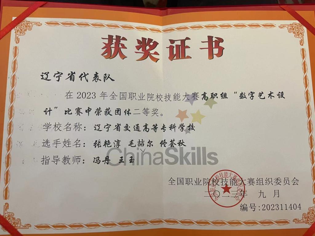 9月26日,2023年全国职业院校技能大赛高职组“数字艺术设计”赛项在天津中德应用技术大学举行。来自全国各职业院校的63支参赛队齐聚天津,同场竞技。经过8个小时的紧张角逐,我校参赛队表现出色,荣获该赛项二等奖。