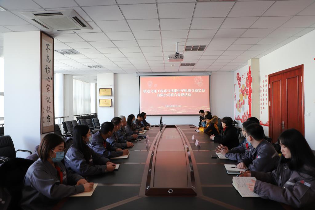 为扎实深入开展学习贯彻习近平新时代中国特色社会主义思想主题教育,创新党建活动形式,推进校企深度融合,12月6日下午,轨道交通工程系与沈阳中车轨道交通装备有限公司开展联合党建活动。沈阳中车轨道交通装备有限公司党委副书记王民、常博文部长及12名职工党员,学校党委书记任冰、党委副书记岳贵鑫、轨道交通工程系党总支书记慕威、系主任刘继光及轨道交通工程系全体教工党员参加。
