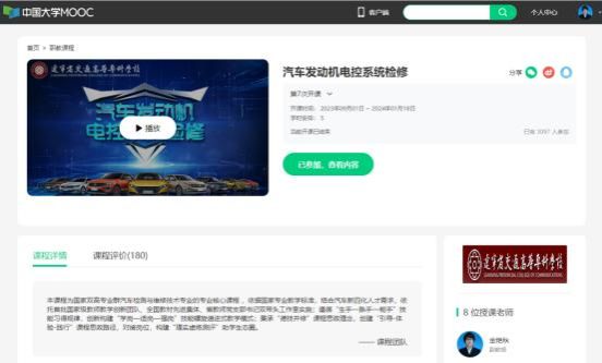 2024年10月23日,教育部公示了2023年职业教育国家在线精品课程认定结果,我校金艳秋老师主持的《汽车发动机电控系统检修》课程成功入选,实现我校国家在线精品课程的“零突破”。该课程质量高、共享范围广、应用效果好,在校内外相关领域都产生了较好的影响,为我校全面推进在线开放课程建设与应用,不断深化信息技术与教育教学深度融合,深入推进以学生为中心的课程改革、教学方式与学习方式变革,提供示范引领作用。