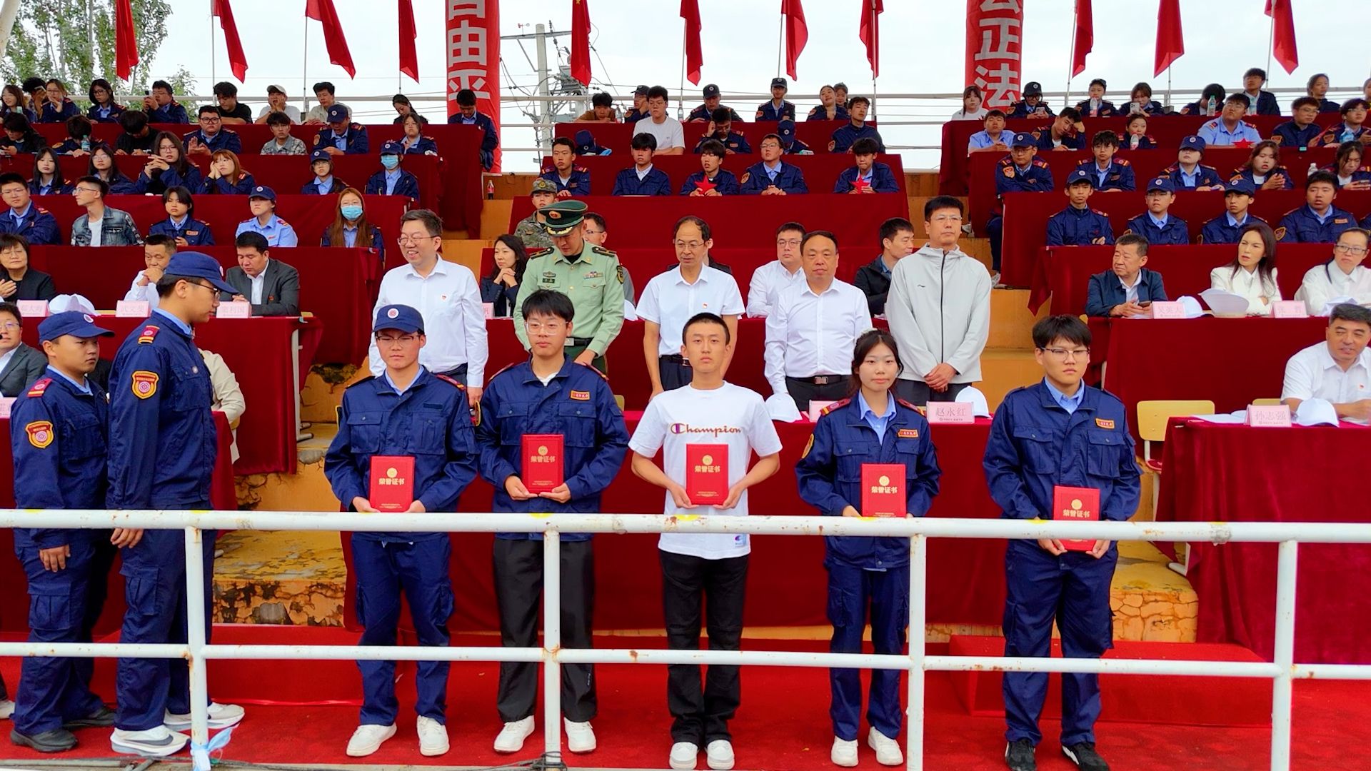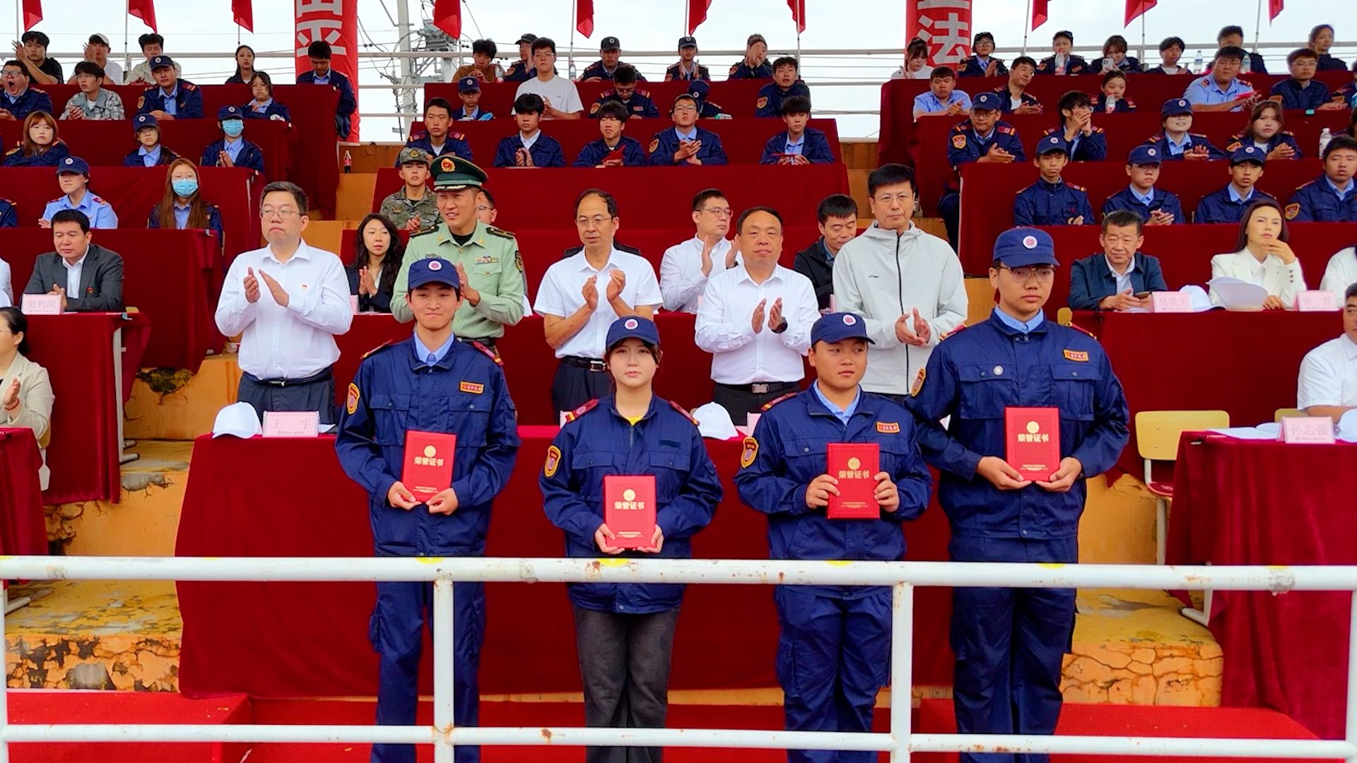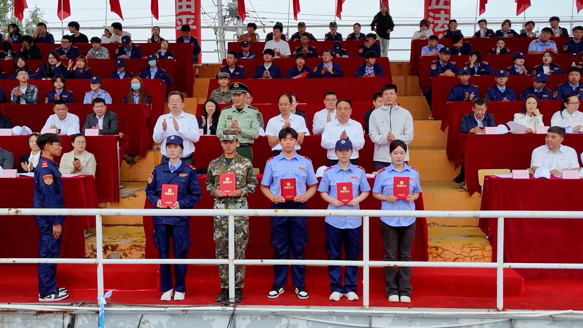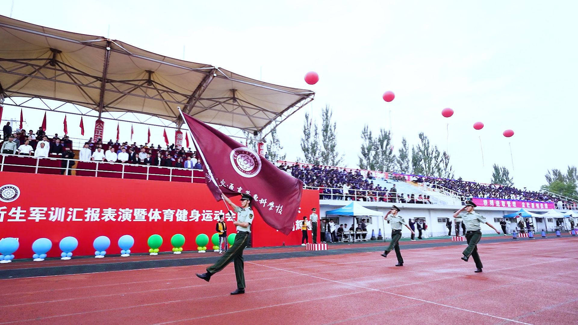 国旗护卫队英姿飒爽、步履铿锵,护送中华人民共和国国旗入场。鲜艳的五星红旗冉冉升起,全场奏唱国歌,大会正式开始。首先进行新生军训汇报表演。受阅队伍由各教学系和警士管理学院推选出的10支优秀专业方队及1支女子方队组成。同学们以洪亮的口号与军姿作礼,精神抖擞、步伐整齐,依次走过主席台接受检阅,那一阵齐过一阵的踏步声,熔铸成青春最完美的交响。由女学员表演的女子匕首操表演,动作整齐、步调一致、精神焕发、意志昂扬,宛如坚不可摧的钢铁长城。由男学员表演的男子刺杀操,以刚劲的姿态、铿锵的动作,把青春的热血与阳刚展现得淋漓尽致。由警士生完成擒敌震脚功擒敌动作表演,如猛虎蓄势、锐气逼人,震脚铿锵稳底盘似惊雷撼地,擒敌干脆显硬功如利刃出鞘。