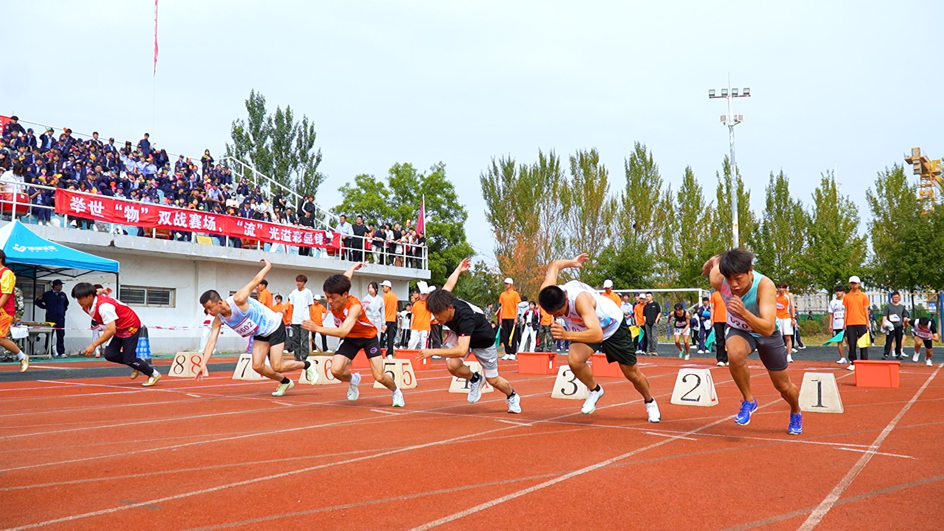 年轻健儿显身手,时代骄子竞风流。在跑道上,发令枪一响,运动员们飞速向前,矫健的身姿在拉拉队的加油声中快速冲过终点。在跳高场地,随着横杆的不断升高,健儿们每一次漂亮的过杆都赢得一阵掌声与喝彩。比赛中,运动员们奋勇争先,努力拼搏,展示着更快、更高、更强的体育精神,他们挥洒着青春的汗水,像跳动的音符在 田径场上弹奏着运动的乐章。广播里不时播出获奖同学的佳绩,各系部踊跃向大会投稿,围观的拉拉队更是激情澎湃,助威声震耳欲聋,此起彼伏。