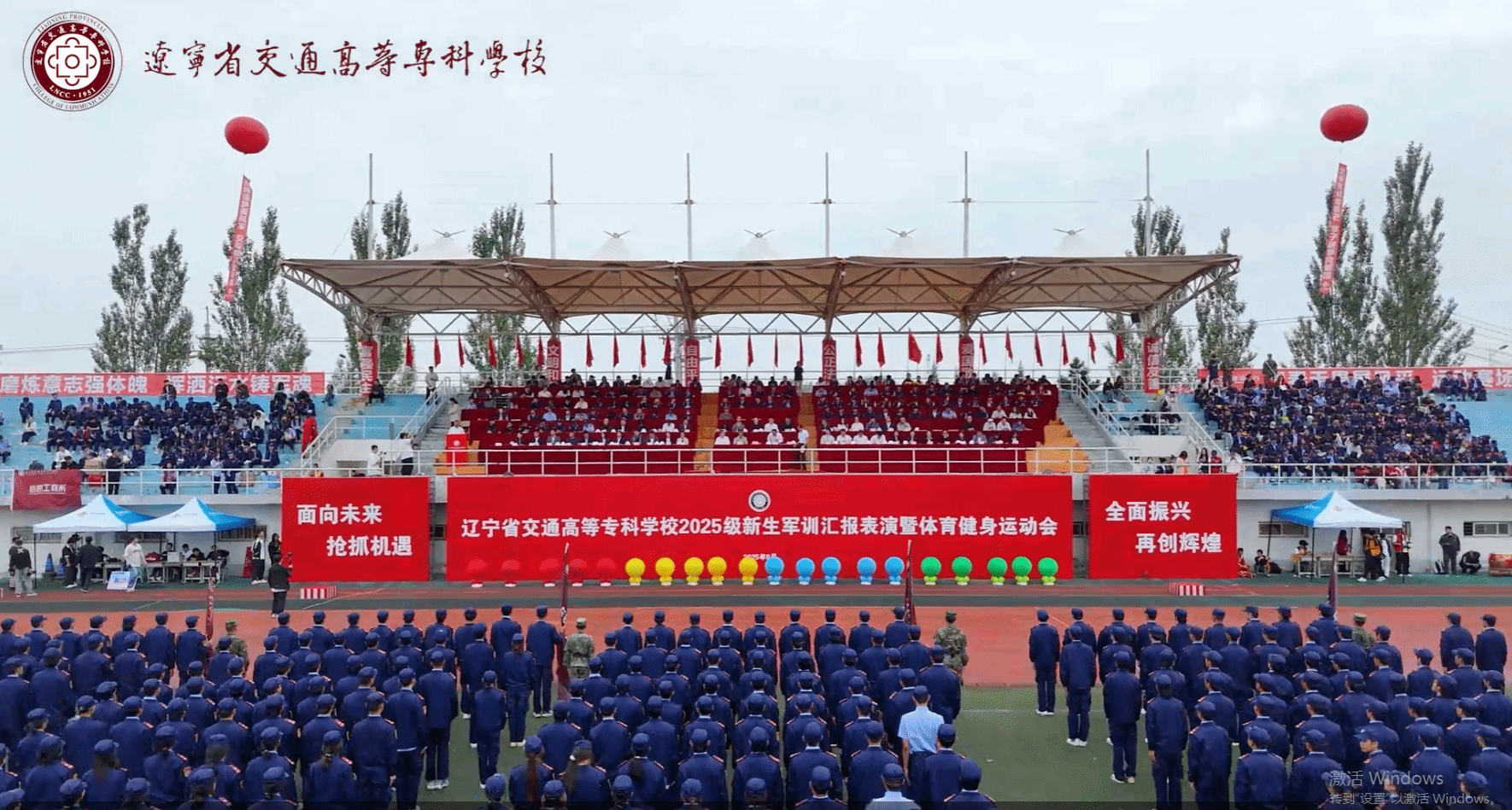 伴随着秋高气爽的好天气,沐浴着九月的暖阳,校长孙延鹏在主席台上隆重宣布辽宁省交通高等专科学校新生军训汇报表演暨2025年体育健身运动会开幕!