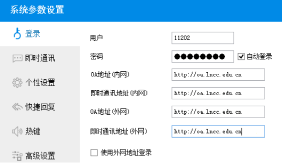 (4)客户端配置:IP地址填写http://oa.lncc.edu.cn