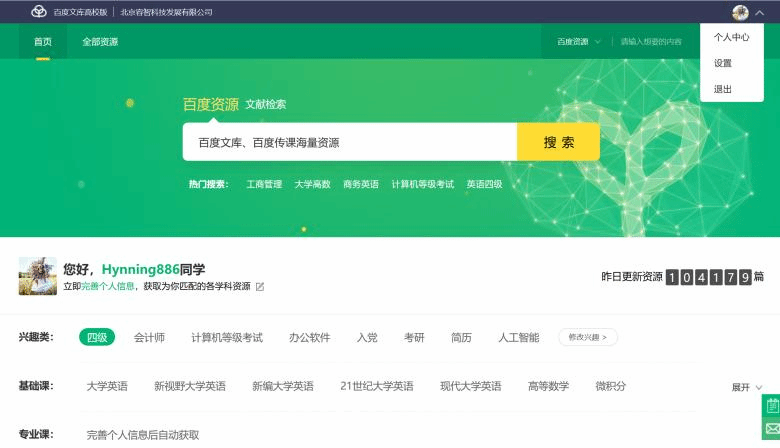百度文库是全球最大的中文文档分享平台。百度文库高校版为百度文库为高校用户提供服务的专业平台,网址为https://eduai.baidu.com。目前已收录1991年至今逾5亿文档,文档涉及教育、专业资料、实用文档、资格考试等领域。资源覆盖31个主流行业,235个细分资料库。该资源由5000家专业机构与30万认证专业人士提供,在资源的上传端奠定资源的权威性及广度。百度文库高校版更为高校师生提供知识图谱,千人千面的个性化设置等服务,以满足日常工作学习的个性化服务需求。