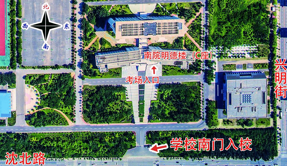 面试报到地点为辽宁省交通高等专科学校明德楼(C座)一楼,C阶一教室。请面试考生从学校南门入校,谢绝考生车辆及陪同人员入校,请提前做好准备。方位图如下: