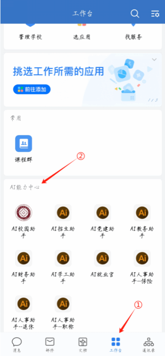打开“企业微信”App,点选“工作台”,找到“AI能力中心”,即可选择需要的AI助手开启对话。
