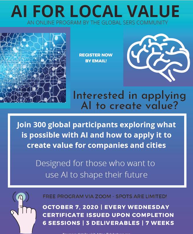 由我国汉办推荐,中央财经大学财政税务学院精英人才培养项目支持,本课程是推进数字化时代人才培养模式的一次尝试。该人工智能服务本土价值项目(AI for Local Value)是一个由SERS组织发起、致力于推动AI技术发展的公益项目,将于今年10月和11月在线上举办。项目围绕AI领域的话题进行线上授课,参与者在完成6个不同模块的学习后可以获得结业证书。本活动完全免费,不收取任何费用。