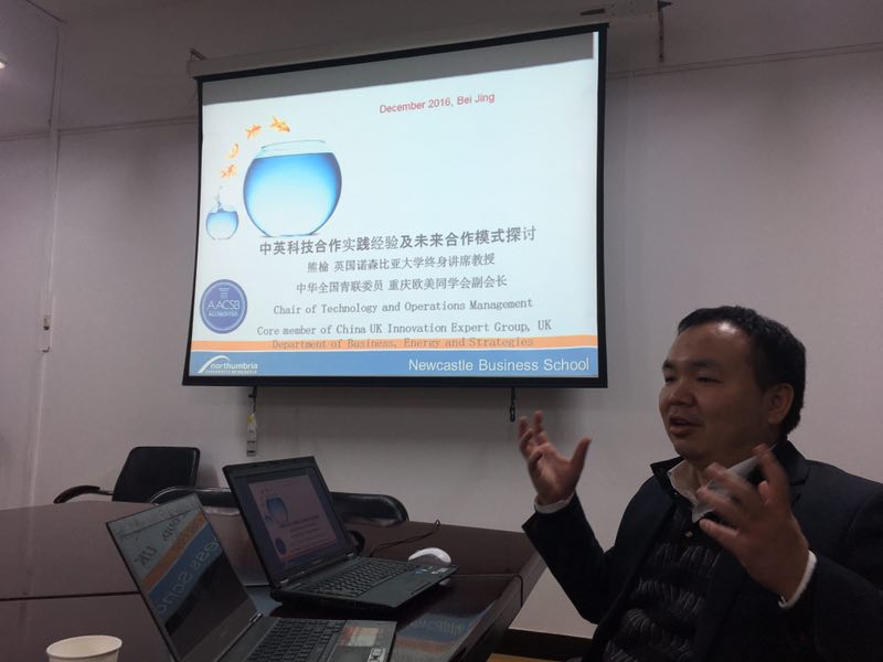 2016年12月2日晚,在中央财经大学财政税务学院1108会议室,英国诺森比亚大学熊榆教授为财政税务学院广大师生举行了公开讲座“国际协调创新研究:基于中英科技合作实践的探讨”。熊榆教授介绍了在中英科技合作领域的最新研究命题,针对一些最新成功案例和总结出来的有效模式进行分析和探讨。