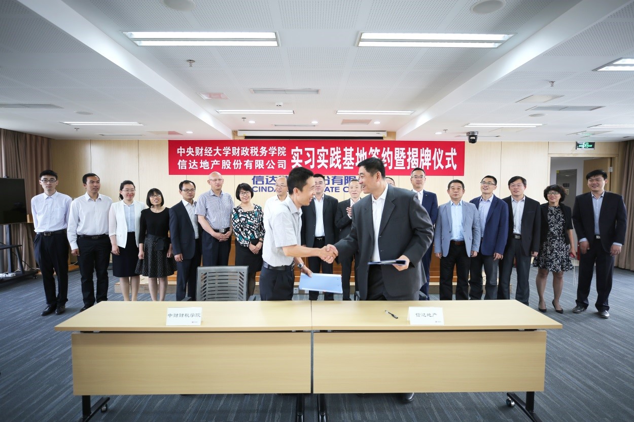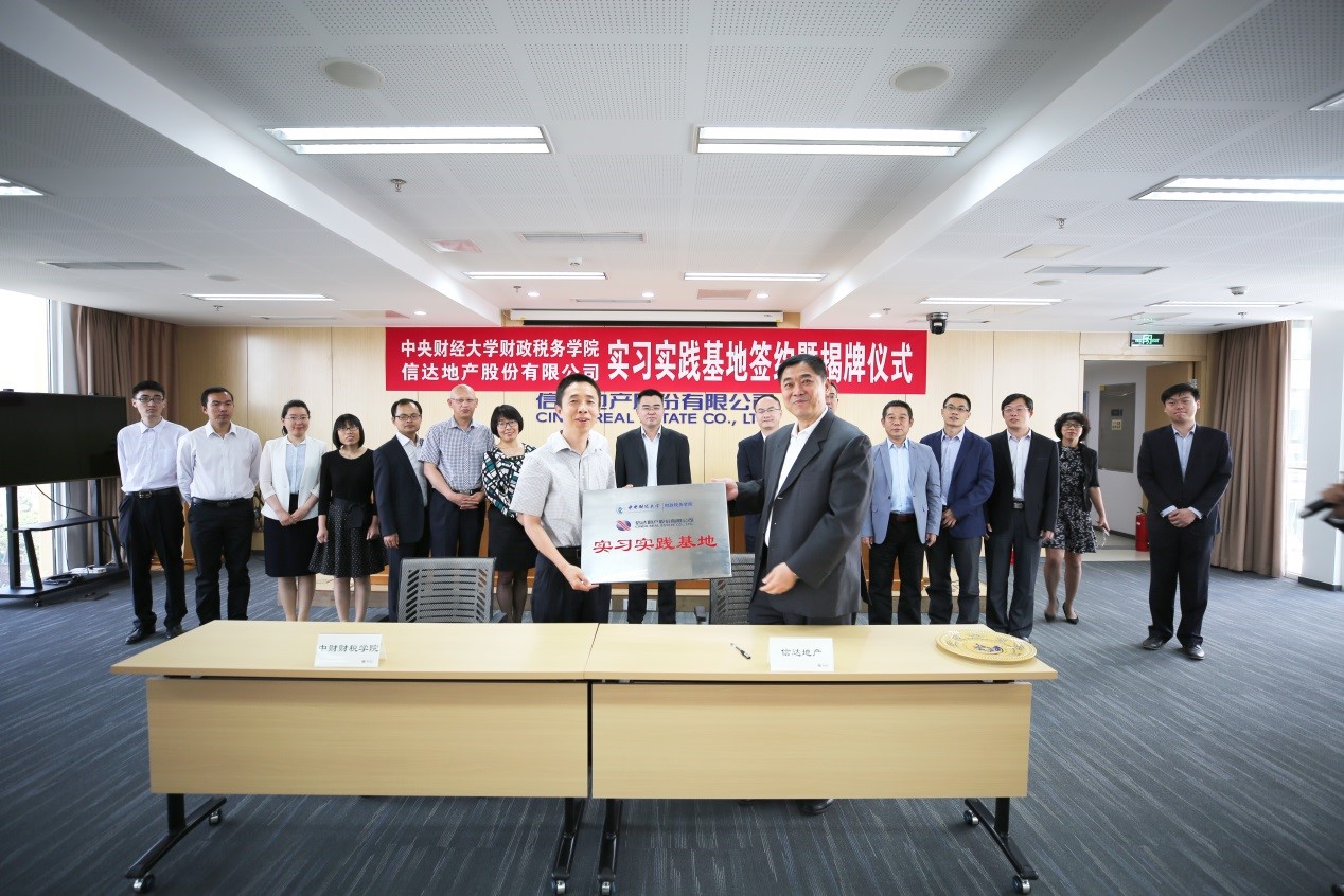 5月12日,财政税务学院与信达地产股份公司实习实践基地共建签约暨揭牌仪式在北京国际大厦隆重举行,财政税务学院院长白彦锋、党委副书记宋立岩,信达地产股份有限公司总经理丁晓杰、副总经理张宁、纪委书记桂千层、人力资源部副总经理丁辉应邀出席,财政税务学院师生代表、信达地产股份有限公司相关部门人员参加了本次仪式。