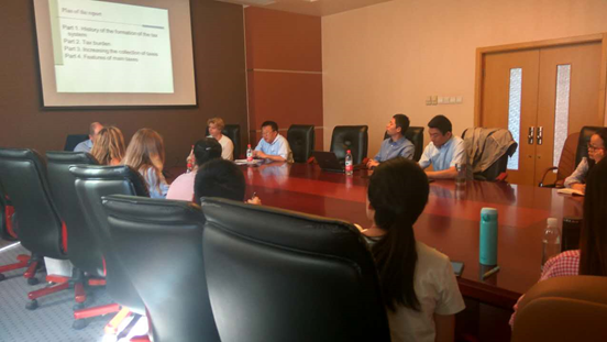 2017年9月22日,俄罗斯乌拉尔联邦大学财务与税务管理系伊戈尔·马布鲁诺夫教授和尤莉娅·列昂季耶夫副教授到财政税务学院进行学术交流。9月22日上午,伊戈尔·马布鲁诺夫教授在学院南路校区学术会堂602做了关于俄罗斯近期税制改革的学术讲座。财政税务学院副院长任强教授、院长助理汪昊副教授、邵磊老师等及财税学院的硕士和博士参加了此次学术交流。