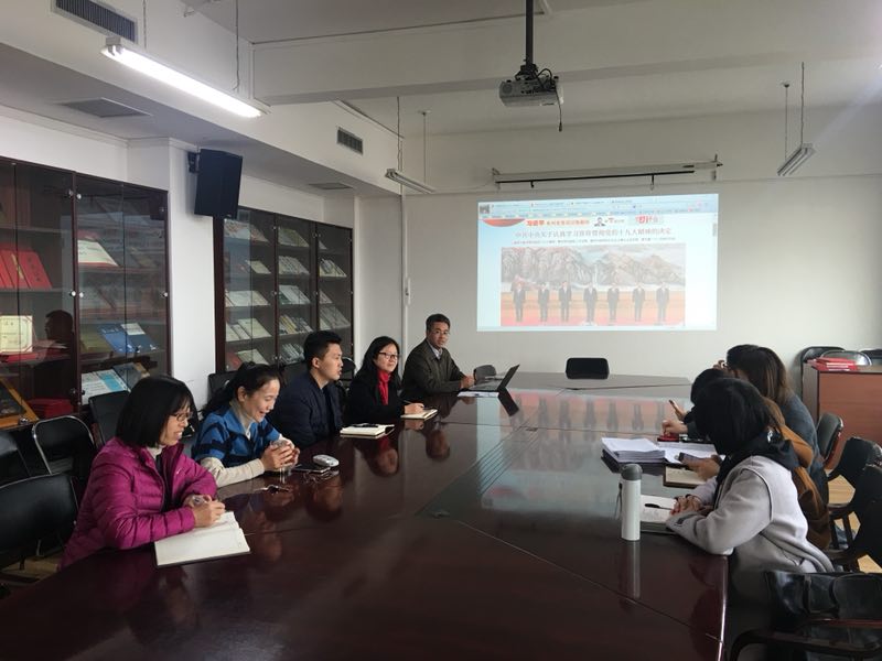 为全面深入学习宣传贯彻党的十九大精神,我院行政党支部全体成员及部分非党员行政教师于11月6日在主教1108进行了集体学习活动,会议由行政党支部书记任义轶老师主持。
