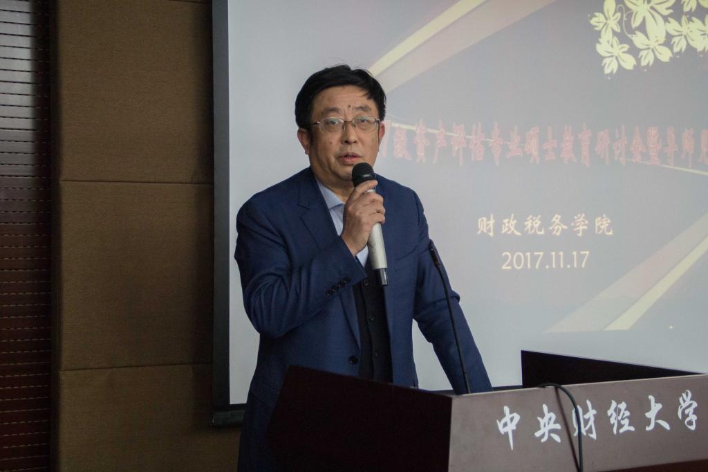 中央财经大学研究生院院长马海涛教授发表讲话。首先,马海涛教授介绍了我校一流学科的建设情况,总结了我校应用经济学学科建设方面取得的成就与未来的发展方向。接下来,马海涛教授回顾了我校资产评估专业硕士教育所取得的成绩,马海涛教授指出,我校资产评估学科的发展一直处于领先地位,我们的生源质量显著提高,学科发展日益完善,毕业生得到了社会的广泛认可和一致好评。最后,马海涛院长号召老师和同学们不忘初心、牢记使命,一起进步,一起成长,为资产评估专硕教育事业的发展贡献力量。