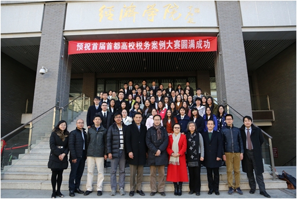 12月17日,首届首都高校税务案例大赛在北京大学经济学院顺利举行。中央财经大学、北京大学、中国人民大学、对外经济贸易大学以及首都经济贸易大学五所高校的十支队伍参加比赛。比赛邀请到国家税务总局国际税务司司长廖体忠先生、德勤中国区副总裁张宝云女士、普华永道合伙人郁启生先生以及来自五所高校的老师担任评委。