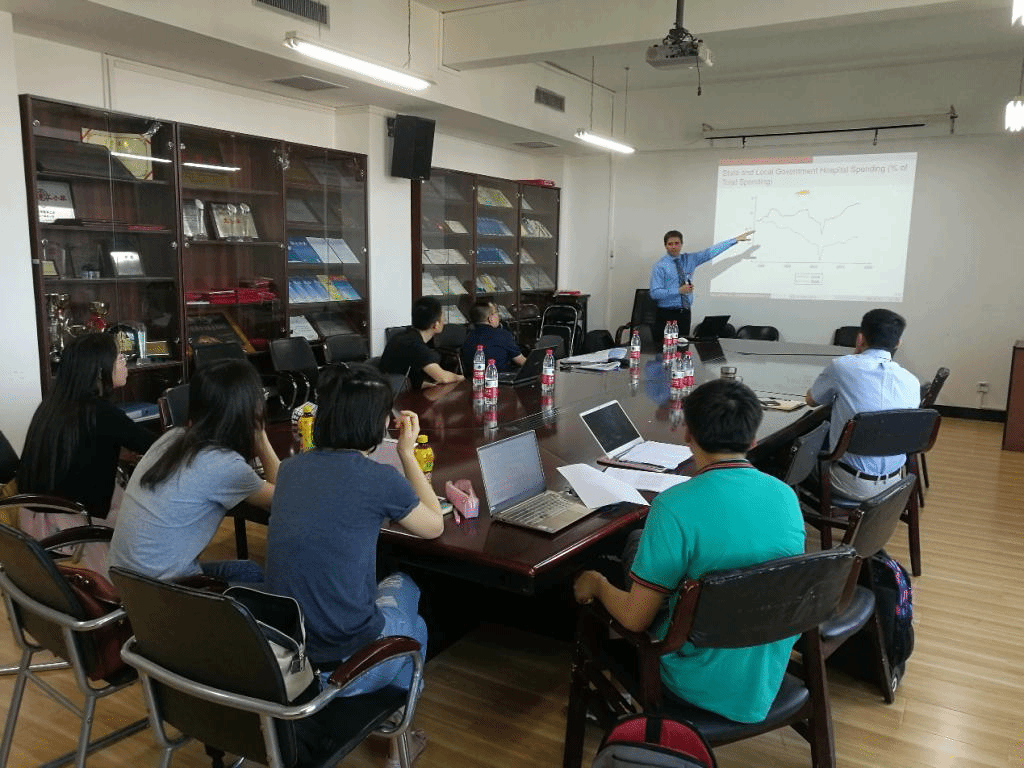 5月30日下午美国印第安纳大学公共和环境事务学院Justin MichaelRoss教授在主教1108会议室作题为“地方政府能否代表选民偏好?——基于地方政府平价医疗法案的研究”讲座。Justin MichaelRoss教授担任印第安纳大学地方政府治理协会主席,其研究领域为地方政府治理、社保改革等公共财政领域。讲座由财政税务学院樊勇教授主持,财政税务学院部分教授和博士、硕士生参加了此次讲座。