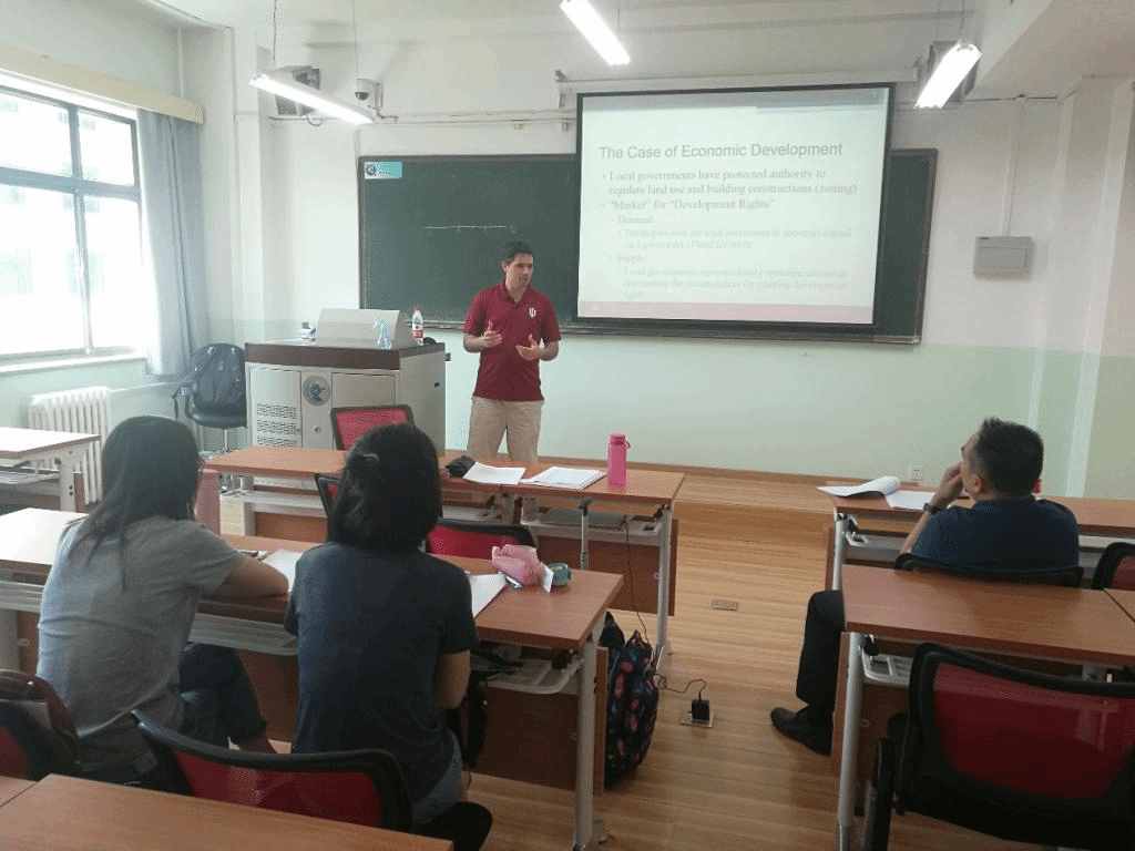 5月31日上午美国印第安纳大学公共和环境事务学院Justin MichaelRoss教授在主教211与财税学院税收学专业博士生作了题为“当地政府会将一些妨害事务设置在行政边界上吗?——基于美国风力发电机的实证分析”的讨论。Justin MichaelRoss教授担任印第安纳大学地方政府治理协会主席,其研究领域为地方政府治理、社保改革等公共财政领域。