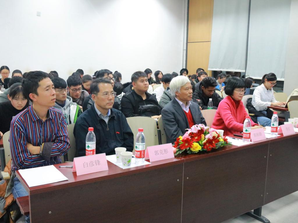 郭克彤秘书长代表中信改革发展研究基金会致辞。郭秘书长简要介绍了中信集团和中信改革发展研究基金会的基本情况,他指出,中信集团创办于1979年,和我国改革开放同步,是国家改革开放的一个先锋和窗口,中信集团作为央企在很多改革领域做了重要探索。中信改革发展研究基金会2014年成立,是一个由中信集团主管的非公募基金会,以“坚持实事求是,践行中国道路,发展中国学派”为宗旨,主要任务是积极配合党和国家的一些重大决策部署,围绕着社会科学领域特别是一些重大问题进行研究。中国道路系列讲座是充分利用中信基金会的一些专家资源与高校合作举办的公益性系列讲座,主要面对在京的一些高校,探讨研究中国的发展问题。郭秘书长认为,我们现在正在进行新时代中国特色社会主义建设,是一项前无古人的伟大事业,不走封闭僵化的老路,坚定不移的走中国特色社会主义正路,通过我们大家的共同努力,特别是青年是我们祖国的未来,经过我们几代人的奋斗,中华民族的伟大复兴一定能够实现。
