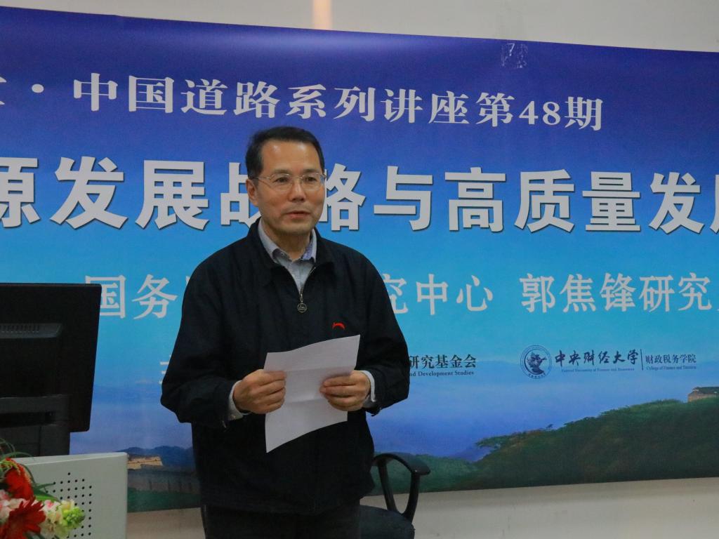 12月10日下午,由中央财经大学财政税务学院、中信改革发展研究基金会联合举办的财税论坛·中信大讲堂·中国道路系列讲座第48期,在我校沙河校区举行。国务院发展研究中心郭焦锋研究员受邀主讲《新时代中国能源发展战略与高质量发展的财税政策研究》。财政税务学院院长白彦锋教授、中信改革发展研究基金会郭克彤秘书长、中信出版集团副总编辑、《经济导刊》杂志社社长季红、财税学院教授高萍,以及财税学院部分教师、研究生和本科生70多人出席了讲座。讲座由中央财经大学财税学院教授、中信改革发展研究基金会咨询委员、中信改革发展研究院资深研究员温来成主持。