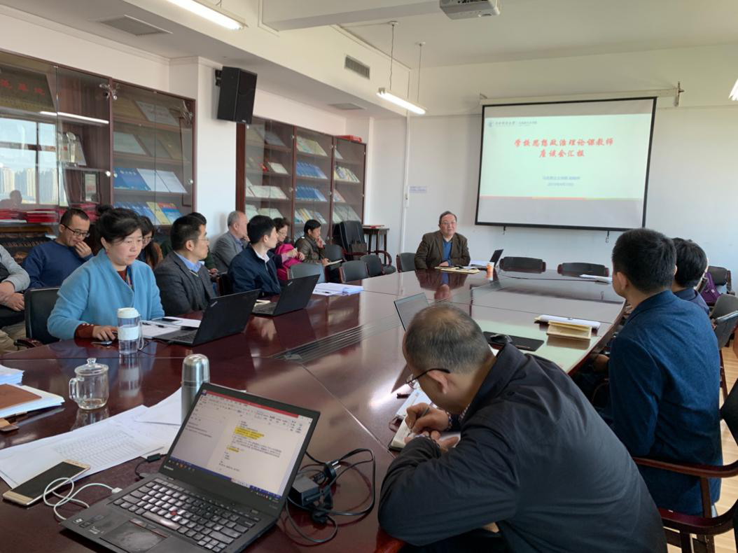 2019年4月10日下午14点,我院“学校思想政治理论课教师座谈会”学习精神会议在学院南路主教学楼1108会议室举办。此次会议邀请到马克思主义学院胡树祥教授主讲,由我院白彦锋院长、樊勇书记携全体教职工参加。