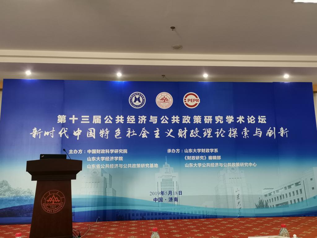 5月18日,由中国财政科学研究院、山东大学经济学院、山东省公共经济与公共政策研究基地共同主办的第十三届公共经济与公共政策研究学术论坛在山东大学举行,本次论坛的主题是“新时代中国特色社会主义财政理论探索与创新”。山东大学校长樊丽明、中国财政科学研究院院长刘尚希、东北财经大学原副校长马国强、中南财经政法大学校长杨灿明、中国财政科学研究院副院长傅志华出席会议。我院副院长肖鹏教授参加了本次研讨会,并就参会学者提交的论文进行重点评议交流。