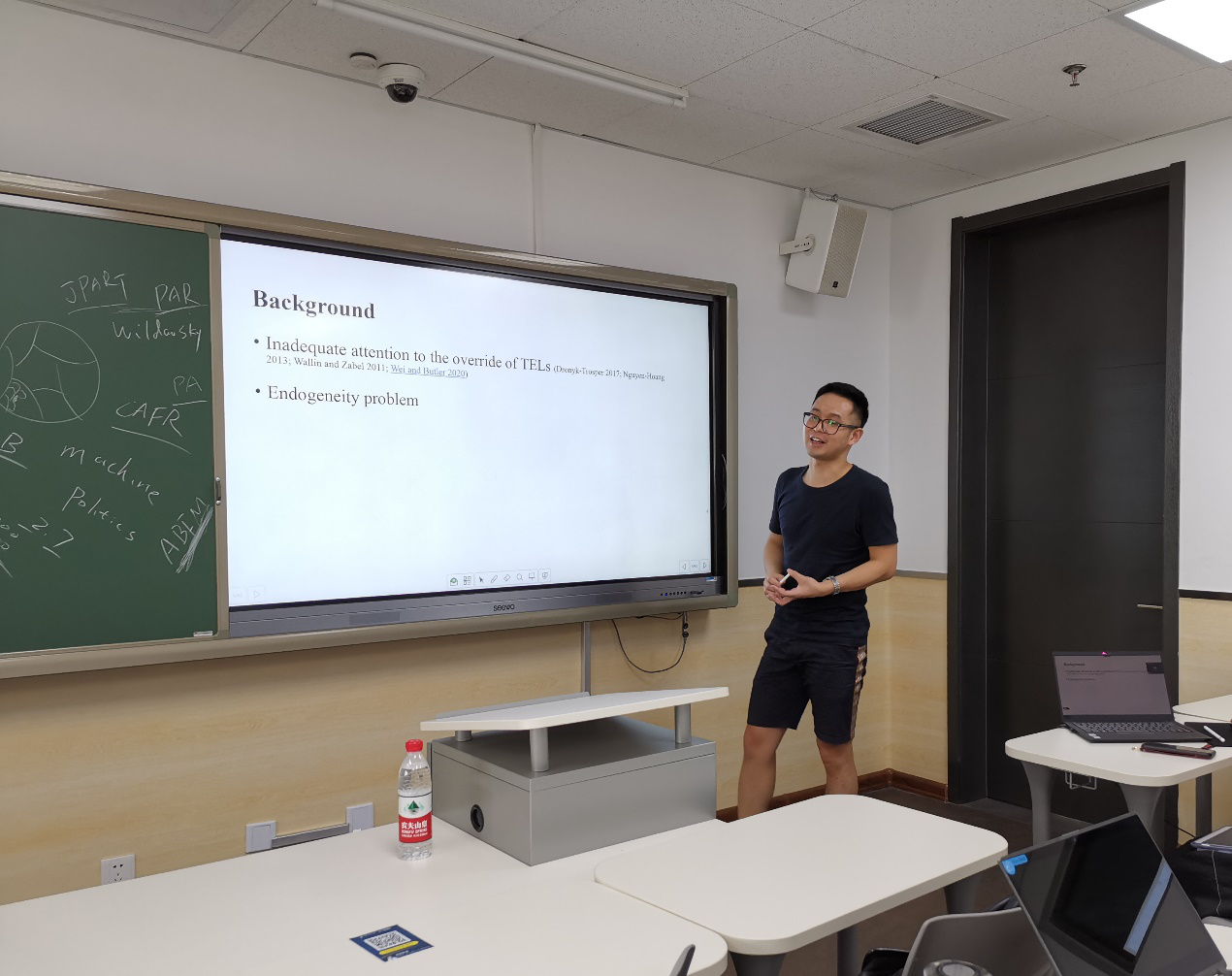 魏文池老师介绍了他最近在Public Administration Review期刊发表的两篇论文:Municipal Structure Matters: Evidence from Government Fiscal Performance和State Fiscal Constraints and Local Responses: Evidence from the Property Tax Limit Overrides in Massachusetts。魏老师认为充分理解美国市政结构及其对地方政府房地产税征收的限制措施,对研究未来中国的房地产税政策有一定的借鉴意义。魏老师将利维坦理论、中位选民理论和议程设定理论等理论方法与实证方法相结合,深入浅出地讲述了美国影响基层推翻房地产税限制的因素,以及推翻限制造成的影响。魏老师讲座结束后,与“线上”“线下”的老师同学进行了互动,解答了大家的疑问。随后任强老师讨论了这两篇文章,并提出了一些问题和思考。这次讲座为研究房地产税以及政府间财政关系问题带来了很多启发。