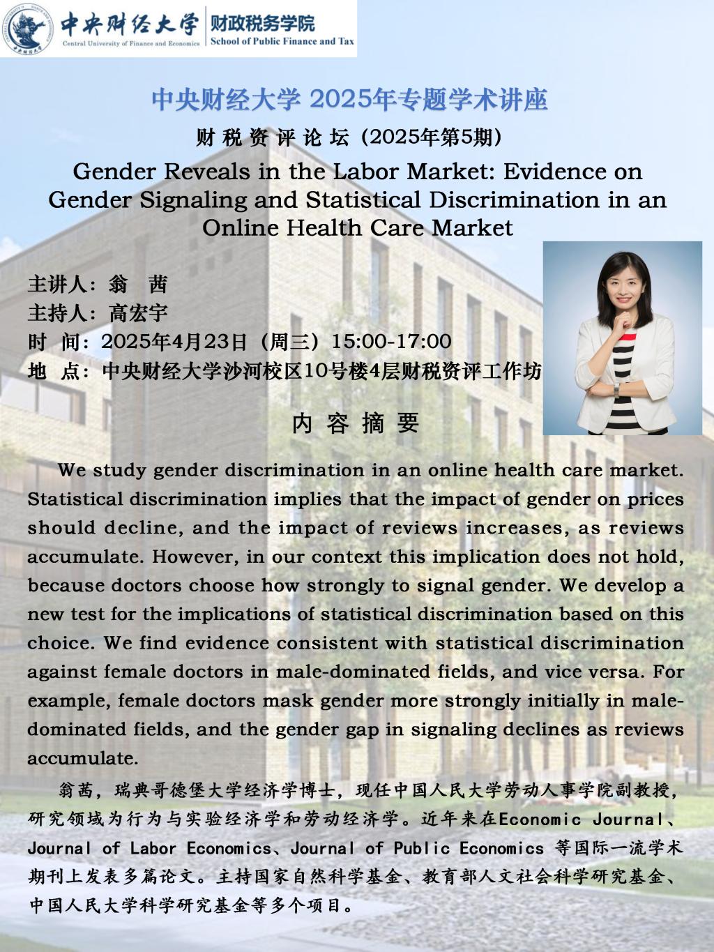 【财税资评论坛】Gender Reveals in the Labor Market