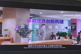 在产品体验环节,社区讲解员引导师生近距离体验了AI视频创作、AR智能眼镜、可视化专注力头戴设备等赋能产品,直观展现了人工智能技术在提升生产生活效率方面的实际效用与广阔应用前景。同时,通过专业化的可视化演示与讲解,师生深入了解了“模数世界”的企业生态构建模式,对其梯度培育机制及启源、进化、领航三大部落的创新布局有了全面认识。