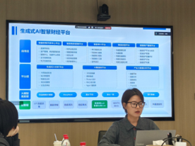 交流答疑环节中,中联教育郝黄达经理围绕生成式AI智慧财经平台进行专题分享,详细介绍了平台包含的生成式AI分析、智能财税共享中心、智能税务管理、智能估值、数据资产管理等核心模块,系统呈现了人工智能技术赋能下财税领域的数字化转型成果。分享内容通过数据支撑与实例佐证,凸显了生成式AI在企业实务操作与财税专业教育中的应用价值,有效深化了学生的专业认知。随后,师生围绕生成式人工智能及智能体在财税场景的具体应用、技术落地难点等问题展开深入交流。