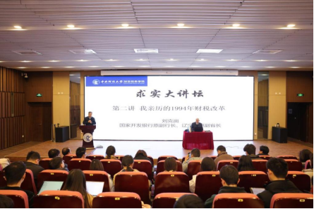 2024年3月5日,财政税务学院于沙河校区图书馆地下一层报告厅成功举办求实大讲坛第二期:我亲历的1994年财税改革。本次讲座邀请到原国家开发银行副行长、原辽宁省副省长刘克崮。本次讲座由财政税务学院院长樊勇主持,副院长李小荣和学院师生参加。