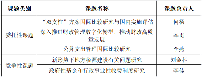 近日,财政部2023年部省共建联合研究课题评审结果揭晓。2023年部省共建联合研究课题共设置课题27项,其中,委托性研究课题17项,竞争性研究课题10项。我院何杨教授、李贞教授、李燕教授、刘金科副教授、李佳副教授申报的5项课题获批立项,其中委托性课题3项,竞争性课题2项,占我校总中标课题总数的50%以上,研究领域涉及国际税收、财政管理、数字财政、财源建设、非税收入管理等。具体中标情况如下: