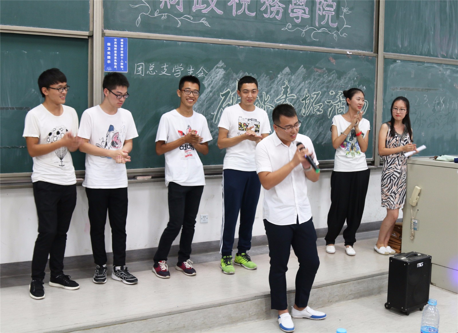 游戏结束后,同学们依照安排,前往东区主教学楼110教室。在这里,主持人对一天的活动进行了总结,在游戏中落后的组,亦进行了才艺展示。破冰素拓活动在同学们的欢笑与掌声中圆满结束。