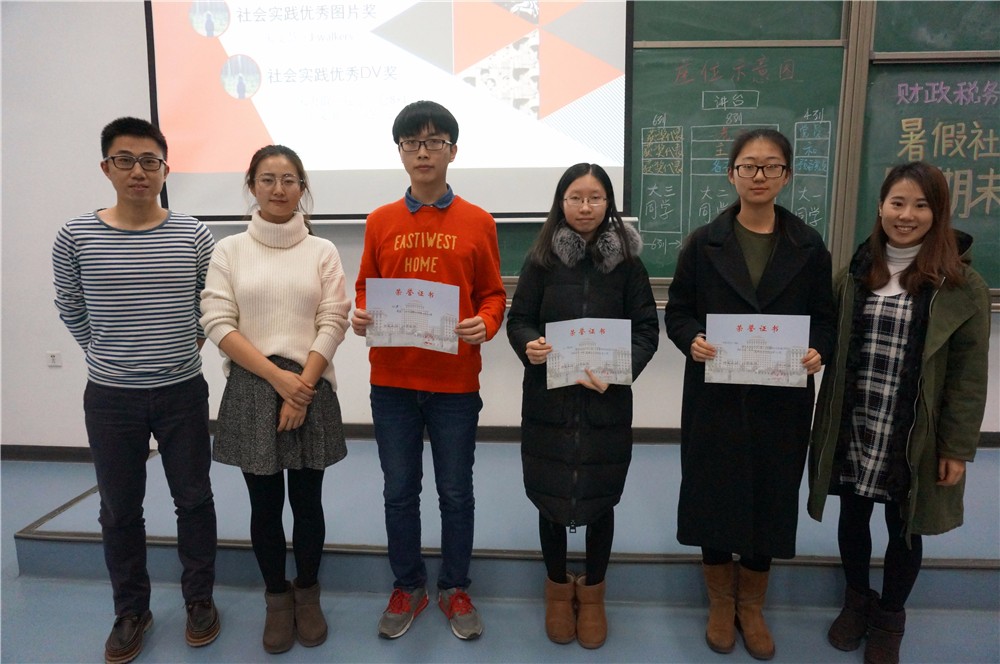 大会对暑假社会实践中表现突出的团队和个人进行了表彰,由主持人鲍梦蓓宣读获奖名单。首先宣布优秀团队获奖名单,共评选出一个一等奖,三个二等奖和六个三等奖,白彦锋老师为获奖团队颁奖。接下来颁发优秀实践个人奖,共有十名同学获此殊荣,宋立岩老师为获奖个人颁奖。另有一名同学荣获社会实践优秀图片奖,两名同学荣获社会实践优秀DV奖,蒋绮雯老师、马江聆老师、于钧光老师分别为获奖同学颁奖。