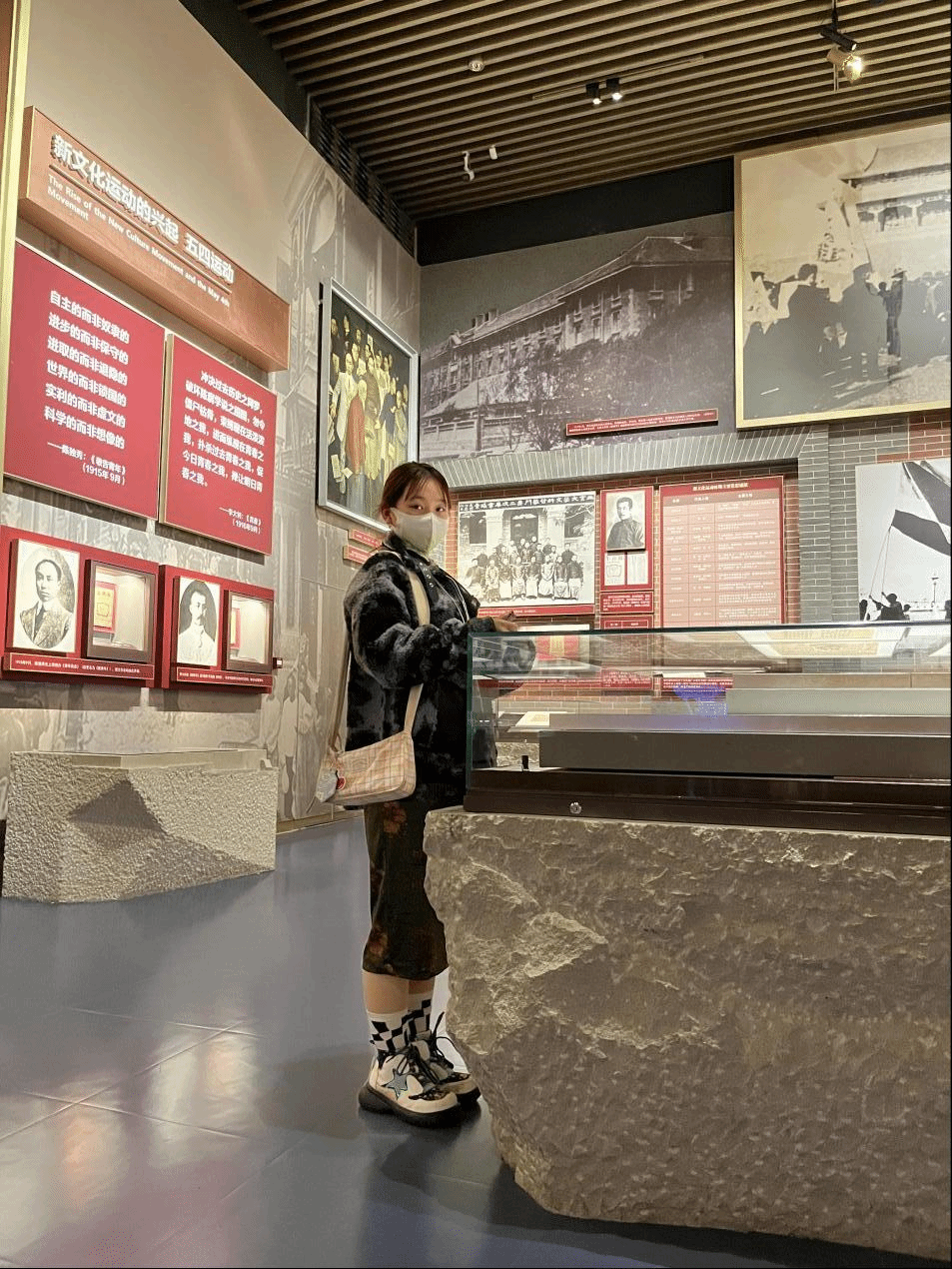 脚步继续前行,心灵也跟随党的革命一步步前进,来到了李大钊先生的相片前,赫然立在旁边的是当时处刑的绞刑架,寒意顿生,内心涌动的是愤怒却也是动容。脚步前行,党的历史也在眼前一一出现。站在毛泽东爷爷的雕像前,只能不心生动容?怎能不落泪?看过了这一程,我们更当奋勇向前,在这大好的新时代,不忘初心、牢记使命,将个人理想融入中国梦中,为建设中国特色社会主义现代化强国而努力!