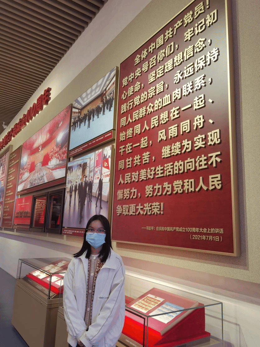 走进庄严的中国共产党历史展览馆,百年历程栩栩如生呈现在我眼前。在这里,我们回顾了开天辟地的大事件——党的成立,回顾了党发展过程中的大大小小的会议和决策。当然,我们也身临其境地感受到了一路的艰辛与血泪,深刻体会到了党史的厚重与百年大业的来之不易。