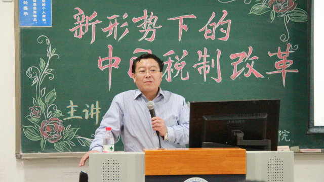 12月18日晚上,财税学院在中央财经大学沙河校区东区主教213教室举办了以“新形势下的中国税制改革”为主题的讲座。主讲人为中央人民大学财政金融学院副院长、中国财政学会理事、中国税务学会委员会委员、中国税务学院理事、中国财税法教育研究会理事岳树民教授。中央财经大学财政税务学院院长白彦锋教授,院长助理汪昊老师,税务管理系王怡璞老师,院团委副书记陈颖老师,以及学院本科和研究生同学参加了本次讲座。