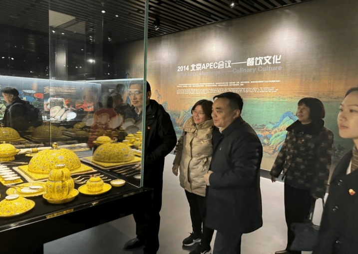 在讲解员的带领下,同志们参观了APEC展示中心。该中心以“国际会都、辉煌印记”为主题,收藏了2014年APEC会议在怀柔召开的珍贵史料。通过展厅内多媒体互动、实物展示、文字介绍,同志们感受到了APEC会议在北京市怀柔区胜利召开的盛世盛况。