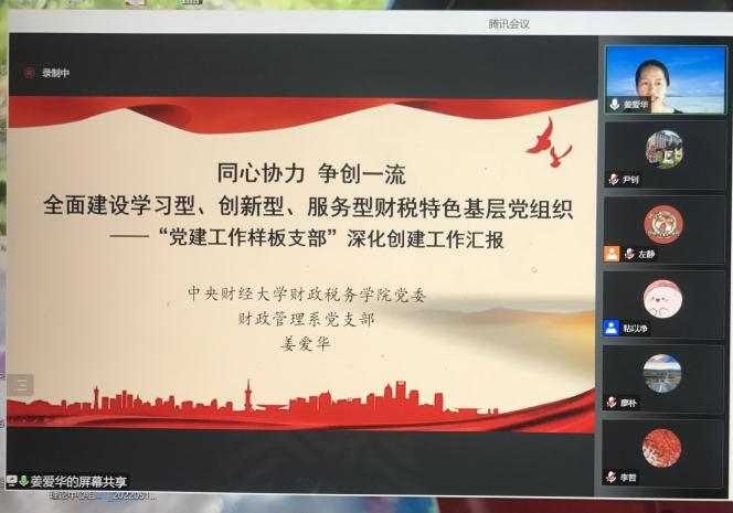 近日,我校首批校级“党建工作标杆学院”和“党建工作样板支部”深化创建验收工作会以“线上+线下会议”形式召开。我院党委书记樊勇、财政管理系党支部书记姜爱华分别代表学院党委、财政管理系党支部参加验收工作会,对深化创建工作进行汇报,并顺利通过验收。