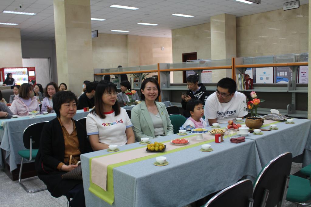 活动由学校工会主办,手工艺协会承办,地点设在图书馆文化讲堂,新颖的活动吸引了七十多位老师参加。现场回荡着高山流水般悠扬的古曲,茶席上精心布置了茶具以及精美的茶点鲜花,舒缓着老师们疲惫的身心,感受着茶文化的洗礼与熏陶。