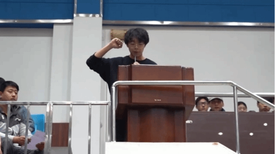 校友代表队2018届信息系毕业生杨家阔同学深情回忆了在校期间的篮球岁月,表达了对母校的深厚感情,并祝愿母校越办越好。