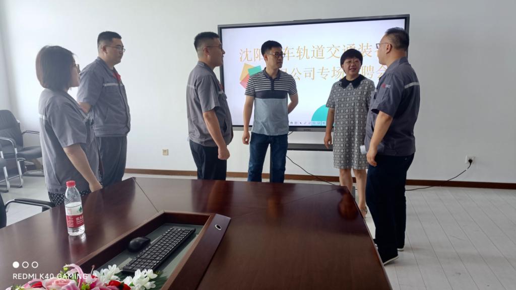 2023年7月12日上午,沈阳中车轨道交通装备有限公司在轨道交通工程系712会议室举办专场招聘会,公司常博文部长一行四人参加招聘。