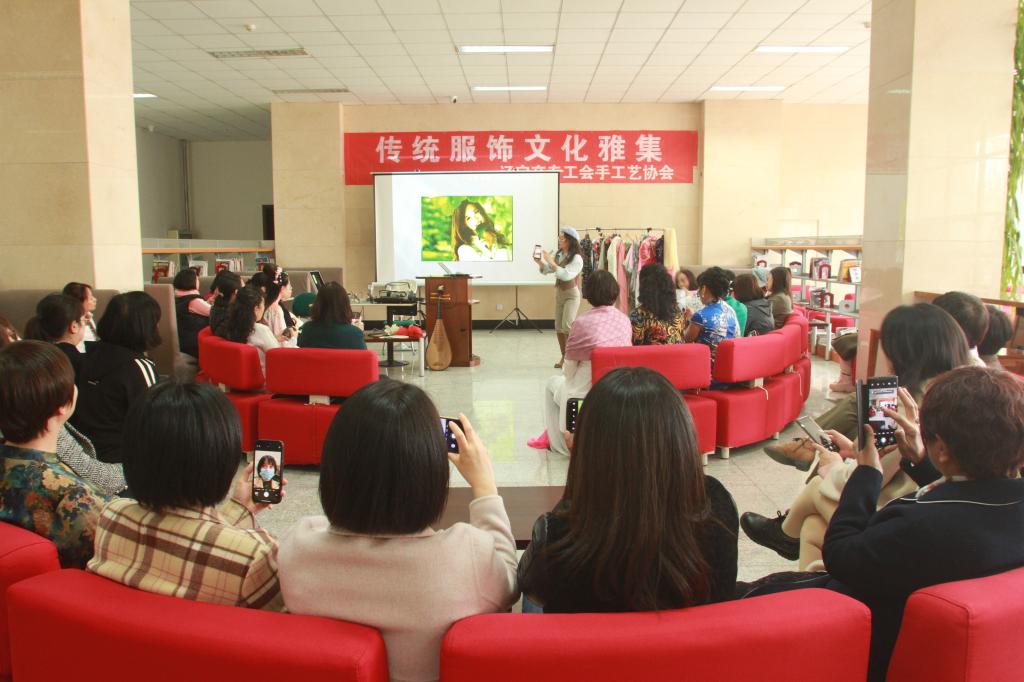 为纪念第113个“三八”国际劳动妇女节,校工会手工艺协会于3月10日中午在图书馆文化大讲堂开展了“流光溢彩庆三八”为主题的女教职工传统服饰文化雅集活动。