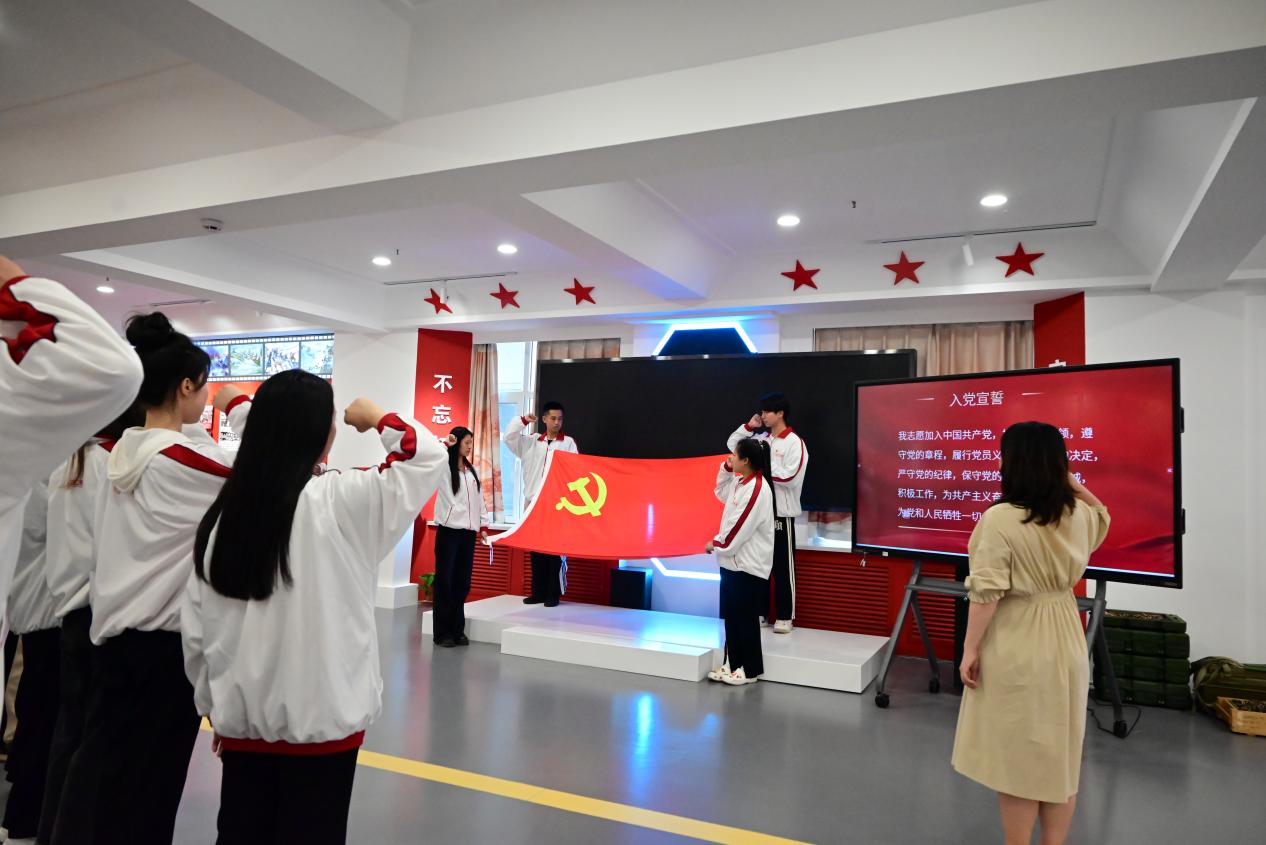 第三个环节由刘新老师带领预备党员进行入党宣誓,并为他们佩戴党员徽章。希望他们能够牢记自己的入党誓词,沿着优秀党员的足迹砥砺前行,将党的信念与力量传承下去,用实际行动证明自己无愧于党徽、无愧于共产党员的光荣称号。
