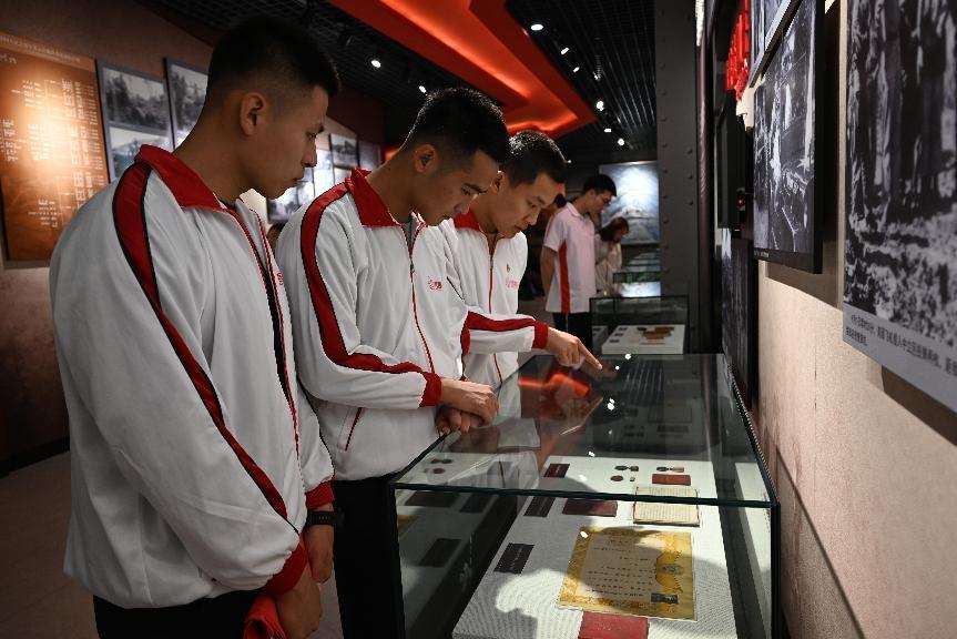 第三个环节是参观烈士纪念馆,这里珍藏着烈士生前使用过的武器,荣获的勋章、军功章等珍贵遗物,其中就包括邱少云被烈火灼烧时的衣服残片,染血的军大衣以及抗美援朝战争420多幅珍贵历史图片。