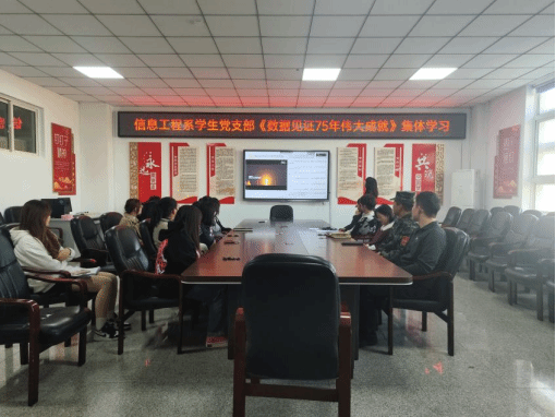 为热烈庆祝中华人民共和国成立75周年,加强师生爱国主义教育,不断激发广大党员的爱国情怀和踔厉奋发、笃行不怠的担当进取精神,信息工程系学生党支部于10月24日在A502会议室召开“国庆心向党,奋进新征程”主题党日活动,活动由刘新老师主持,学生党支部师生及积极分子参与。