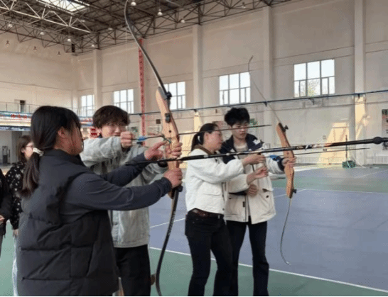 捐赠仪式结束后,我系师生在金东奎副书记的带领下,前往射箭馆参观并亲身体验了射箭项目。校体卫艺主任李丽梅老师详细介绍了射箭队的组建、发展及取得的优异成绩,并在其耐心地指导下,师生们亲身感受这项运动的魅力,也深入了解该校特色的体育文化建设。