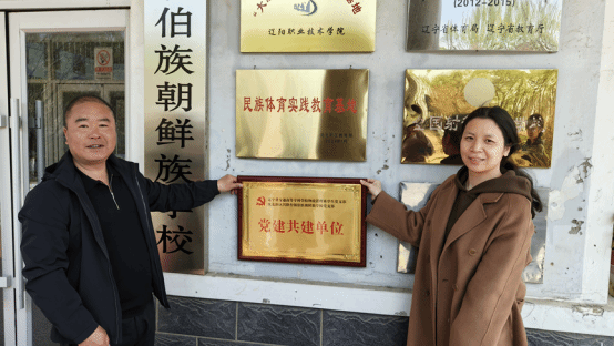我系学生党支部书记王祎帆与兴隆台锡伯族朝鲜族学校党支部副书记金东奎共同为党建共建单位揭牌。这既是双方加强基层党组织建设的重要举措,也是双方深化合作、共谋发展的崭新起点。